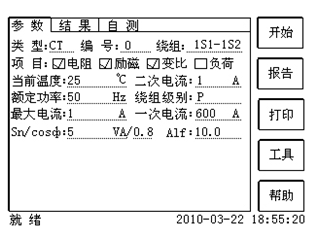 2.6,測試電流:一般可設為額定二次電流值,對于TPY級CT,一般可設為2倍的額定二次電流值。對于P級CT,假設其為5P40,額定二次電流為1A,那么測試電流應設5%*40*1A=2A;假設其為10P15,額定二次電流為5A,那么測試電流應設10%*15*5A=7.5A。