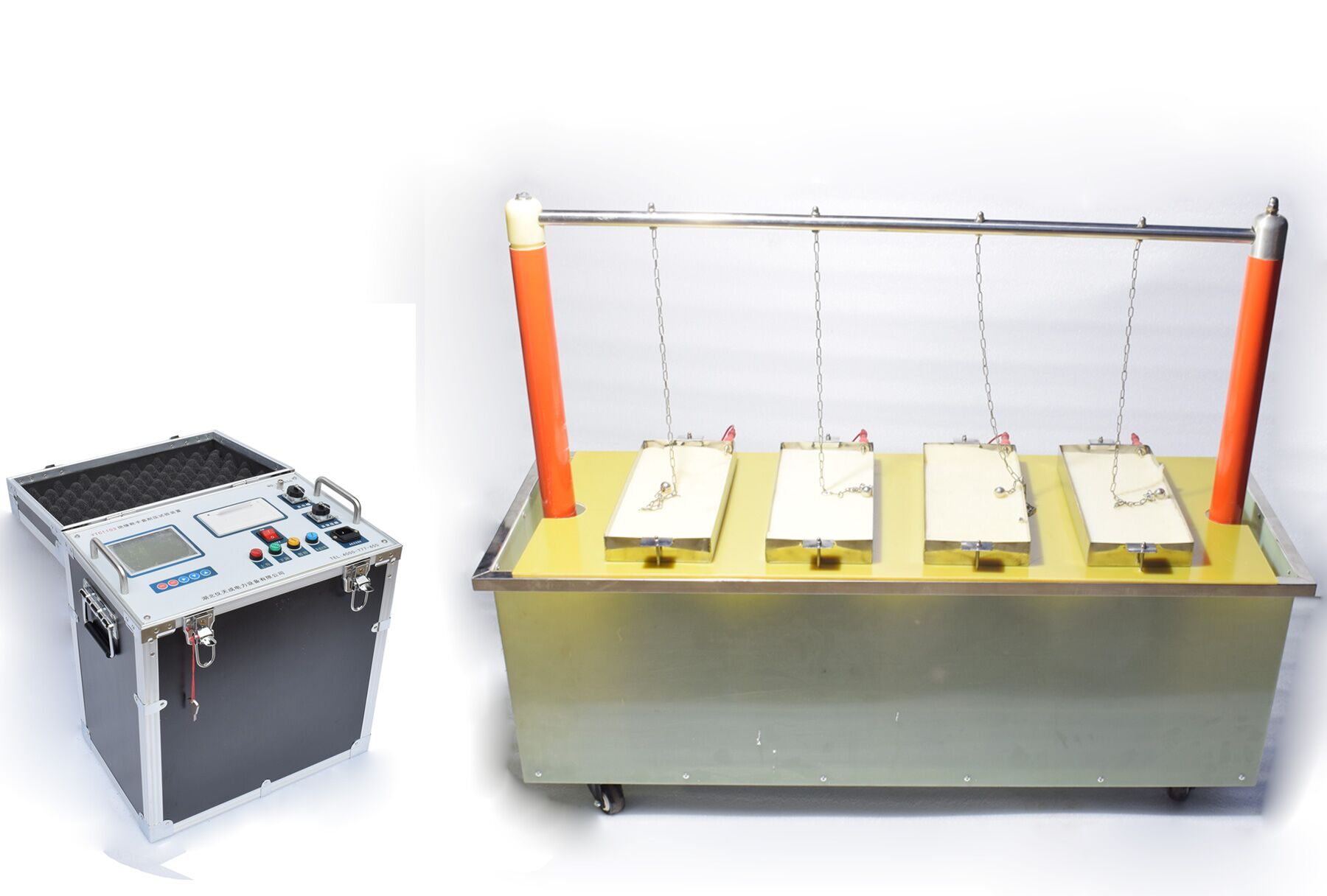 1. 絕緣靴(手套)試驗(yàn)車,試驗(yàn)車由:移動托架;盛水水槽;電極桿支撐等組成;