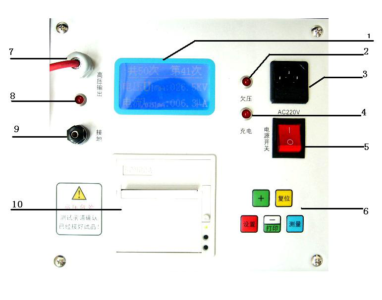 8、高壓輸出指示燈(當(dāng)有高壓輸出時燈亮,沒有高壓輸出時燈滅。)