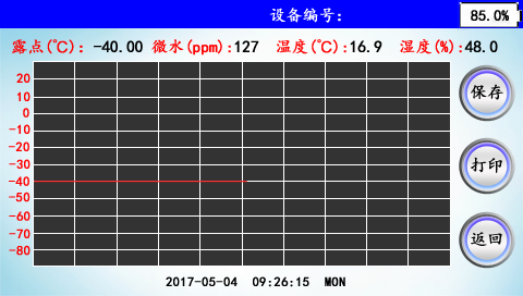 首先打開面板上的流量閥調節流量,把流量調節到0.6L/min左右,開始測量SF6露點。第一臺設備測量時間需要5~10分鐘,其后每臺設備需要3~5分鐘。