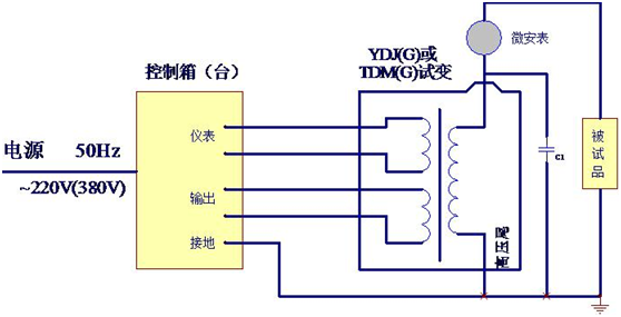油浸式試驗變壓器交流(工頻)耐壓試驗接線示意圖