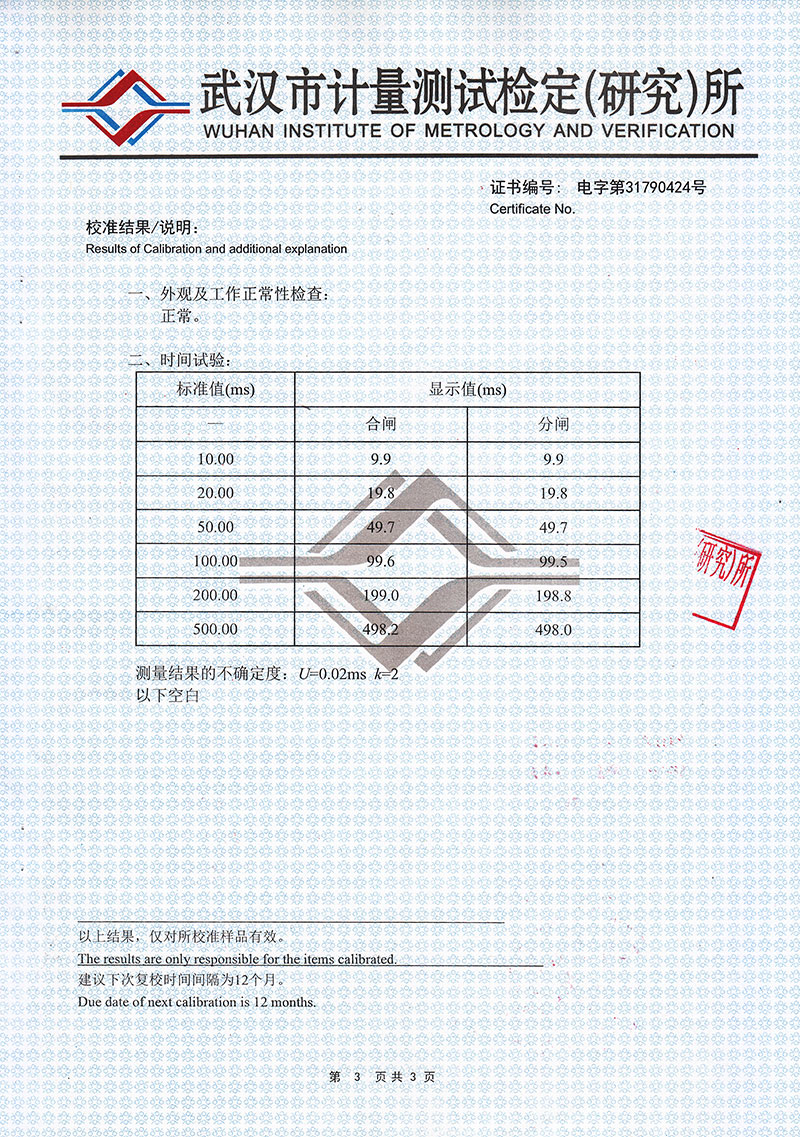 3.彈    跳:每斷口的合閘彈跳時間,彈跳次數,彈跳過程,彈跳波形;每斷口的分閘反彈幅值。