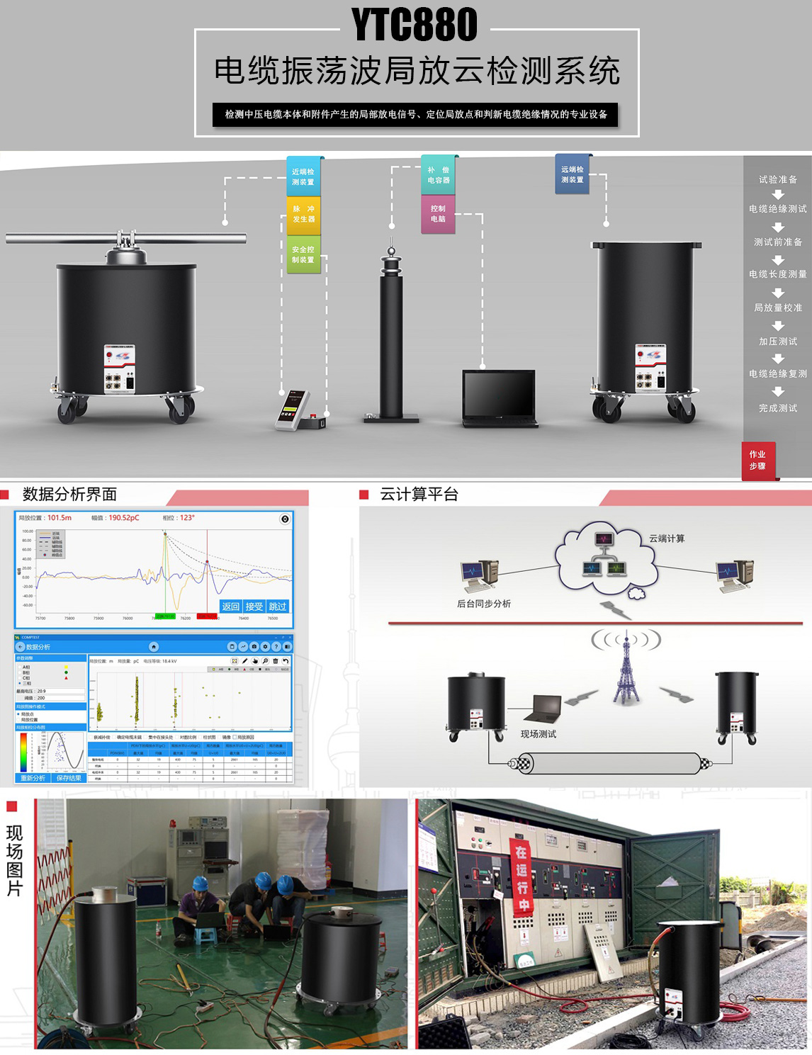 2、設備基于先進的云計算技術,能夠在電纜測試現場利用無線網絡將測試數據上傳到云計算平臺,實現對電纜局部放電數據的統一管理和智能分析。