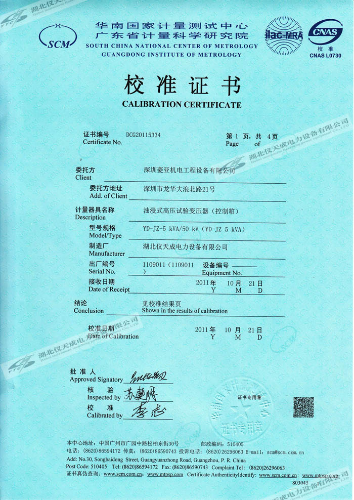 轉(zhuǎn)載:"YD-JZ-5kVA/50kV油浸式高壓試驗變壓器的資質(zhì)證書" 請注明來源于儀天成電力。 更多技術(shù)問題請致電儀天成電力客戶服務(wù):027-87876585,技術(shù)部專線:027-87876585,在線客服:719388481