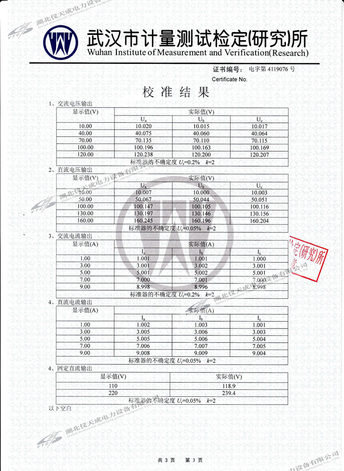 YTC702微機繼電保護測試儀的資質證書