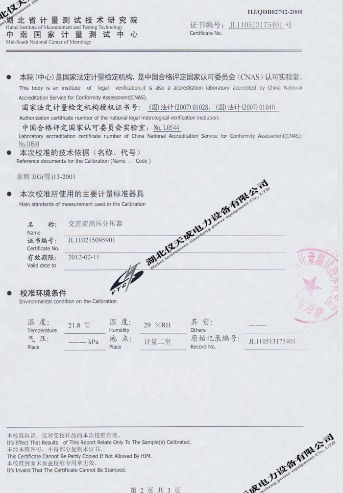 轉載:"YTCZG-60kV/2mA直流高壓發生器的資質證書" 請注明來源于儀天成電力。 更多技術問題請致電儀天成電力客戶服務:027-87876585,技術部專線:027-87876585,在線客服:719388481